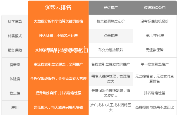 優(yōu)幫云是一家專業(yè)做SEO和網(wǎng)站建設(shè)的服務(wù)商,為個人開發(fā)者用戶、中小型、大型數(shù)字營銷企業(yè)用戶提供一站式營銷推廣、網(wǎng)站優(yōu)化、網(wǎng)站建設(shè),優(yōu)化團(tuán)隊擁有十來年的搜索引擎優(yōu)化經(jīng)驗(yàn),優(yōu)化技術(shù)優(yōu)良且更新算法符合2019年搜索引擎,SEO技術(shù)超越國內(nèi)優(yōu)化同行。優(yōu)幫云是國內(nèi)為數(shù)不多具有自主核心技術(shù)的云數(shù)字營銷服務(wù)商,以精湛的技術(shù),為大中小型企業(yè)提供周全的優(yōu)化服務(wù)。