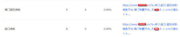 從搜索結果看,這樣的結果并不需要點開看內容頁是什么,點開了也是我的網站的一個搜索為空的頁面,但是在搜索結果標題中,對方想做的關鍵字和目的網址或者聯系方式等,都在搜索結果中出現了。如果有人搜索關鍵字,不必進我的網站,在標題中就能得到相關信息,有可能就去他的網址或者聯系方式了。在百度站長工具中,我也看到了搜索關鍵字及入口頁面,我試著搜了下關鍵字,果然能看到我的網站的垃圾關鍵詞收錄頁面。