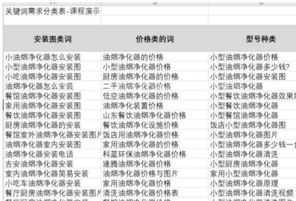 當我們獲得大量的關鍵詞數據后,我們經過篩選得到一些與自己的企業產品相關的關鍵詞,去掉垃圾詞,關鍵詞詞庫表示例如下: