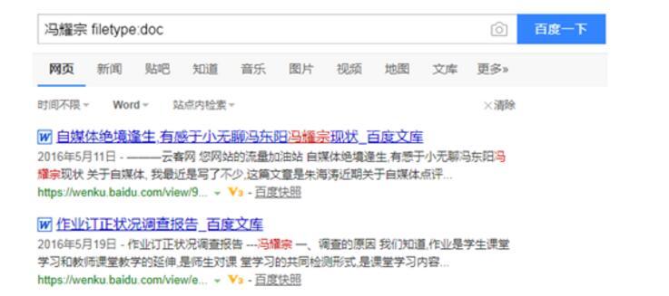 第三種搜索形式主要是可以用來搜索精準的文件類型,比如說你要搜索word文檔文件,那么按照上面的形式可以完全搜索到。當然這類格式還有pdf、xls,ppt,rtf,all,txt等格式的文件。