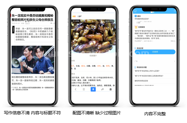 非優質內容反面示例文章內容嚴謹,專業性強,有專業的話語話術,可深挖深層次原因和邏輯,能夠多角度、多方面闡述自己的觀點,對于需要指導用戶操作的內容,要求邏輯清晰,內容實用,如果單靠純文本內容無法表達清楚,可以借助其它更豐富的內容表達形式。