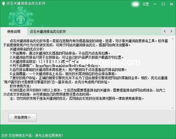 在本站下載點(diǎn)石關(guān)鍵詞排名優(yōu)化軟件,解壓之后雙擊.exe,就可以直接打開(kāi)使用了,無(wú)需安裝